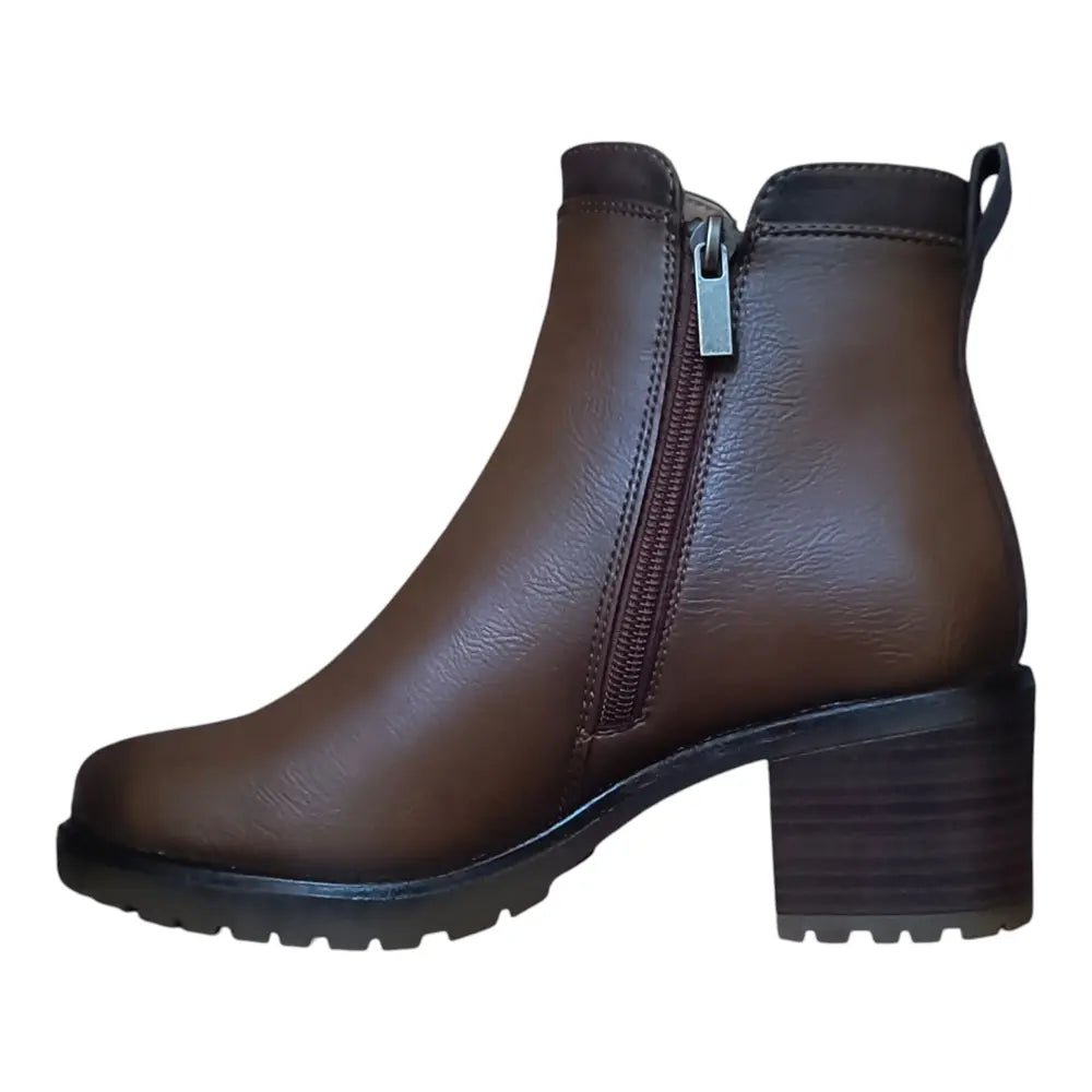 Botine din piele ecologică, cu design simplu, toc mediu stabil și fermoar lateral pentru încălțare ușoară. Ideale pentru ținute de zi sau office.