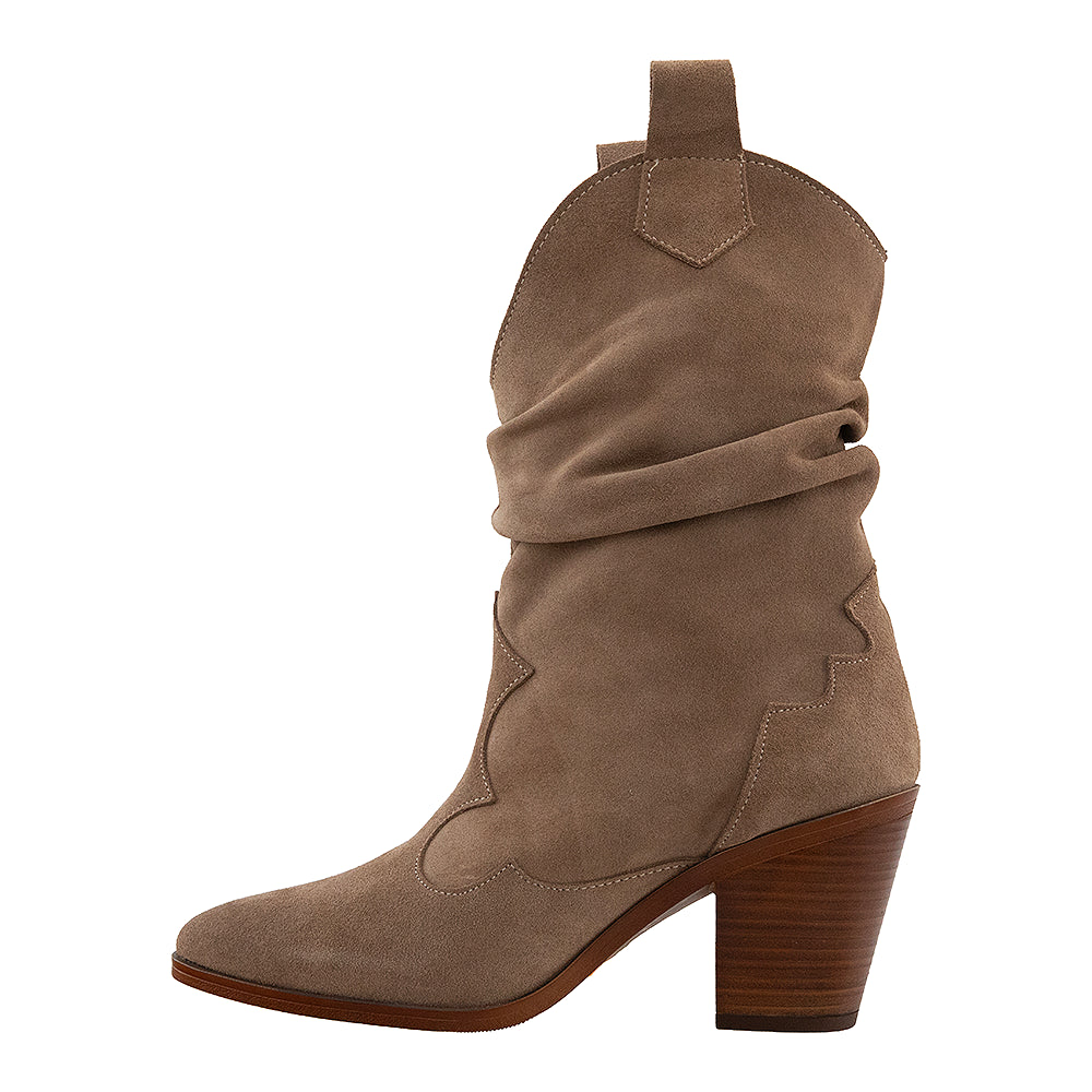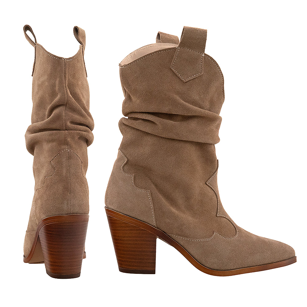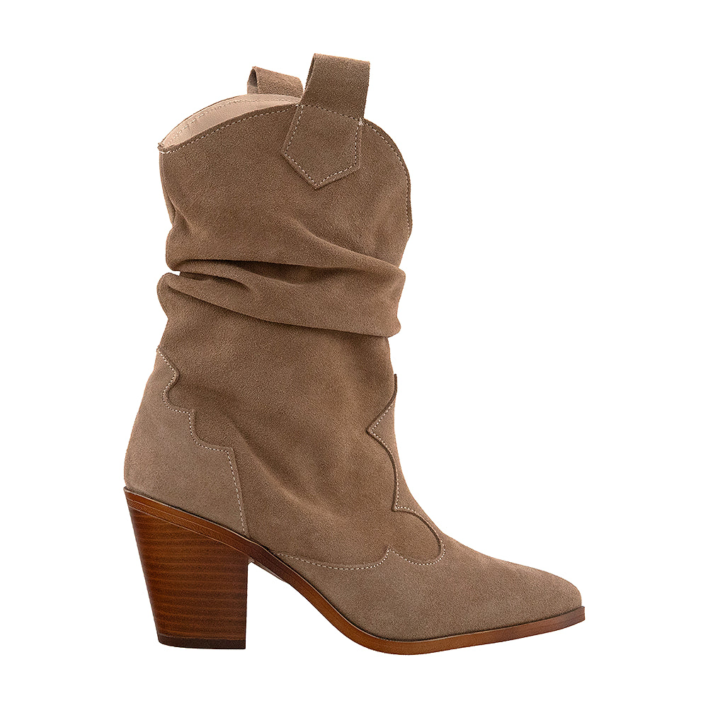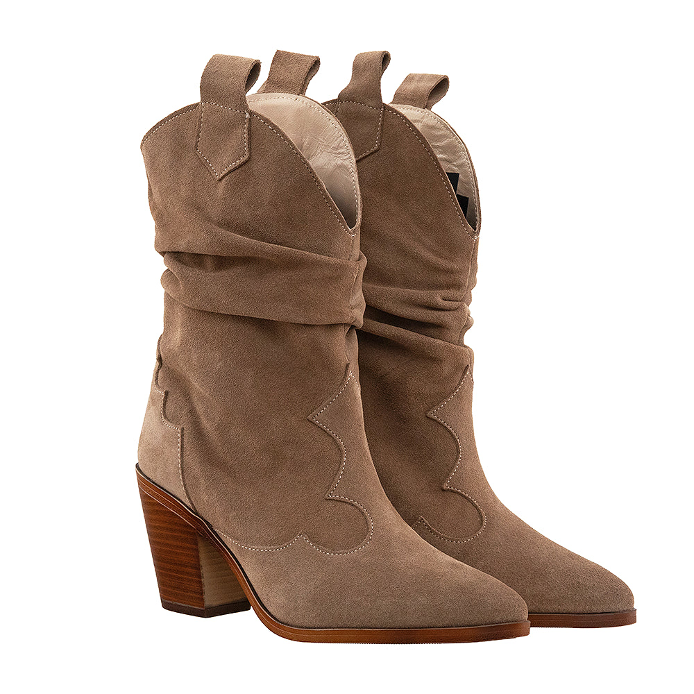 Realizate manual în România din piele întoarsă de cea mai bună calitate, aceste cizme îmbină lejeritatea plisării de la gleznă cu un toc confortabil. Cusăturile discrete conturează un design elegant.