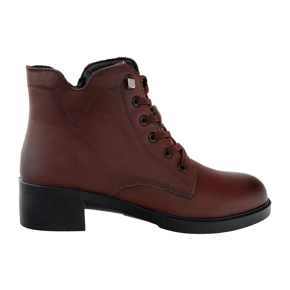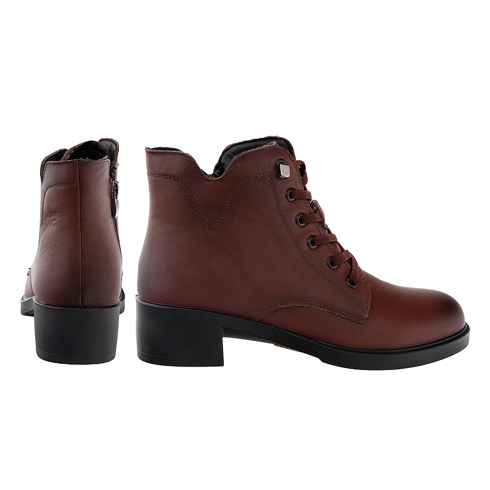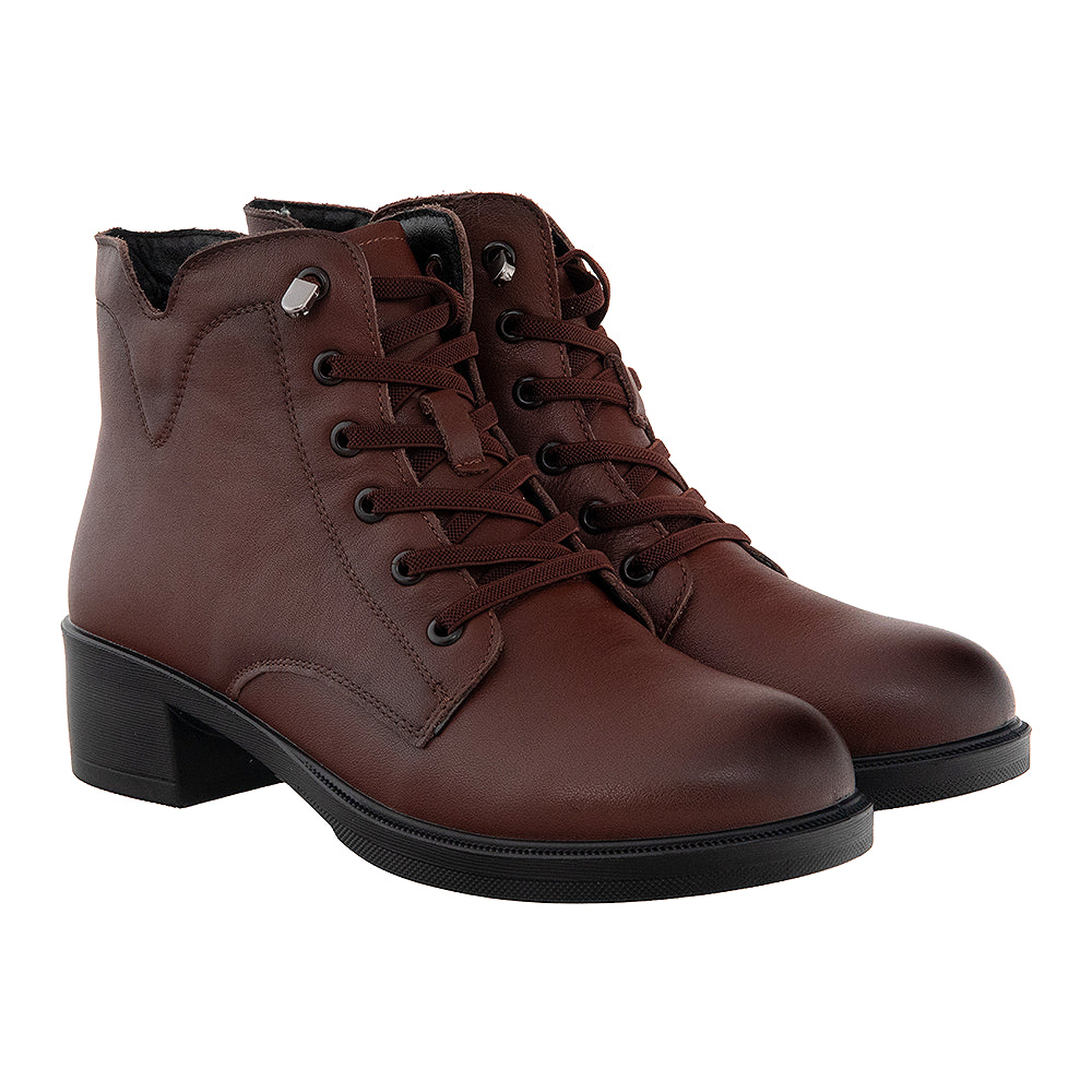 Ghete din piele naturală, cu interior combinat din material textil și piele naturală. Talpa extrem de flexibilă, tocul de 4 cm, șireturile elastice și branțul foarte moale.