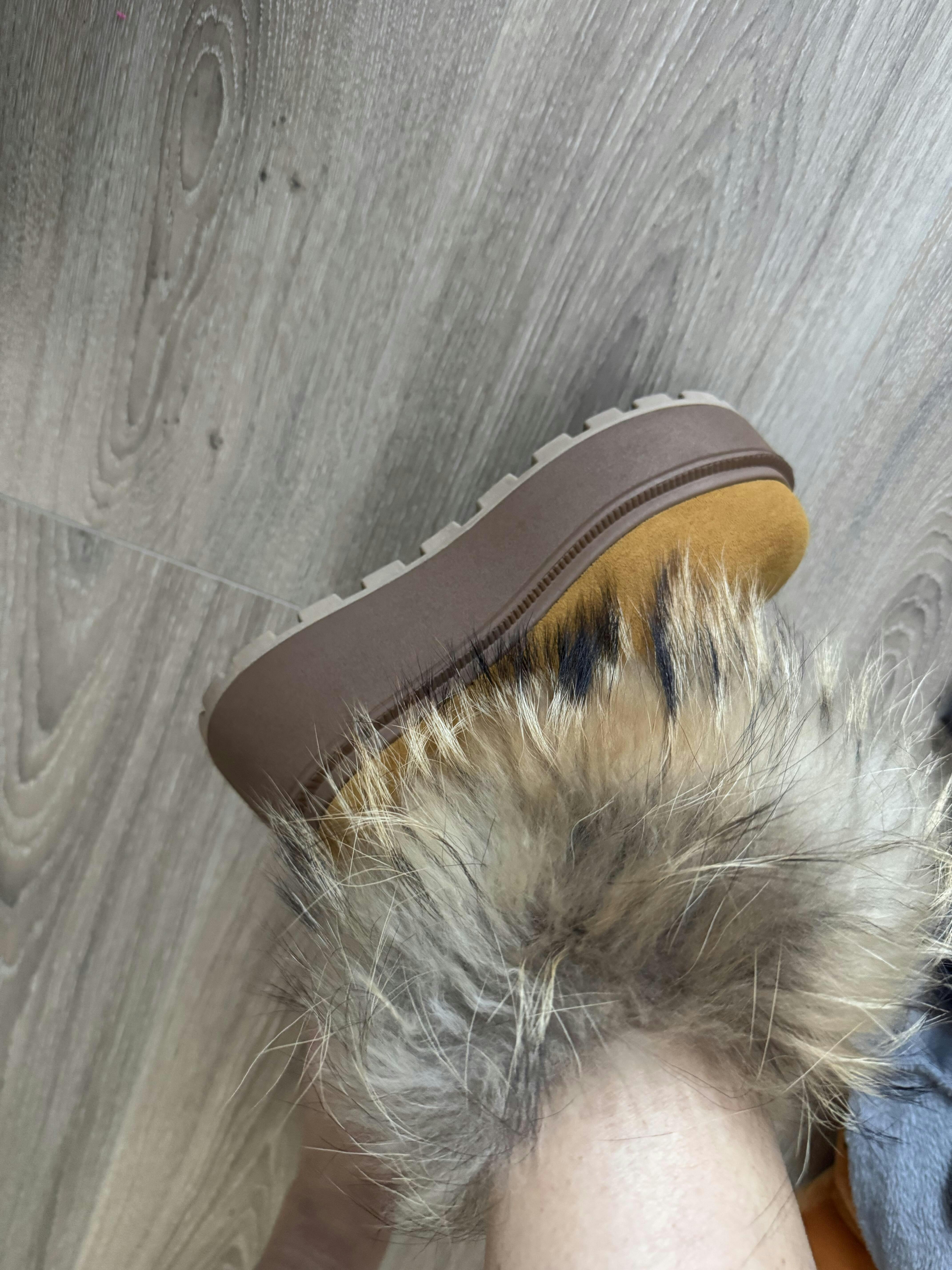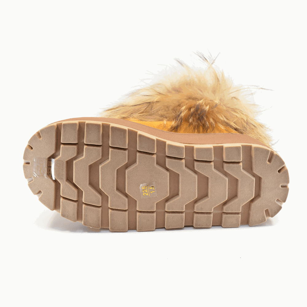 Ghete de iarnă din piele naturală. Talpa groasă, cu platformă de 4 cm în față și 5.5 cm în spate, oferă stabilitate și un plus de înălțime fără a compromite confortul. Designul modern, completat de detalii din blană, le face ușor de integrat în orice ținută casual de iarnă.