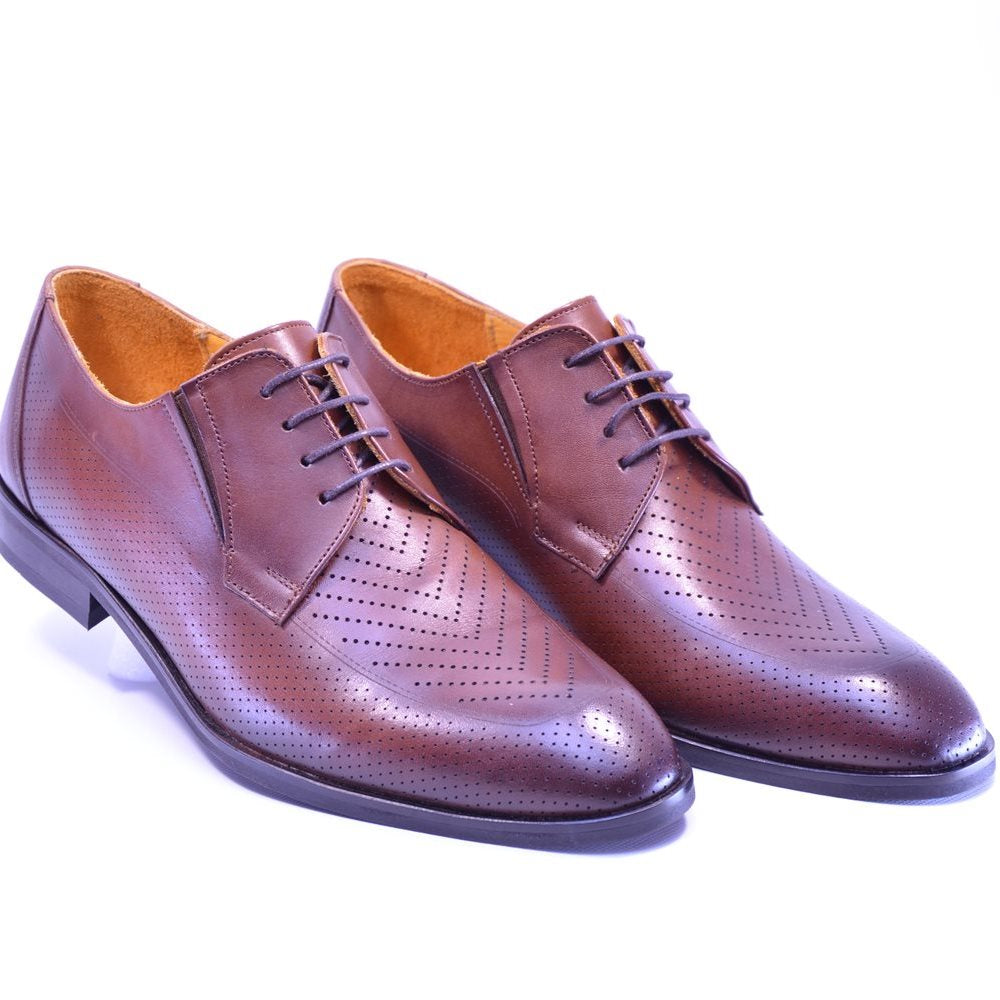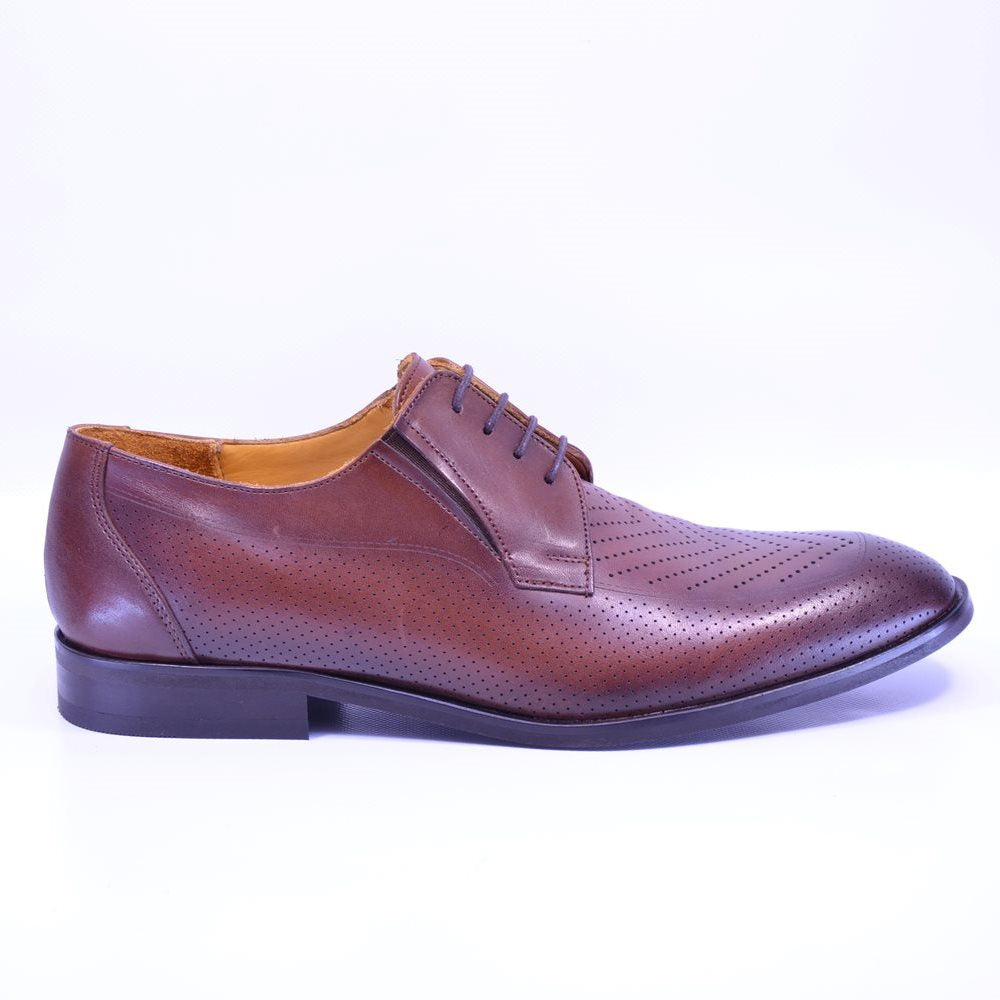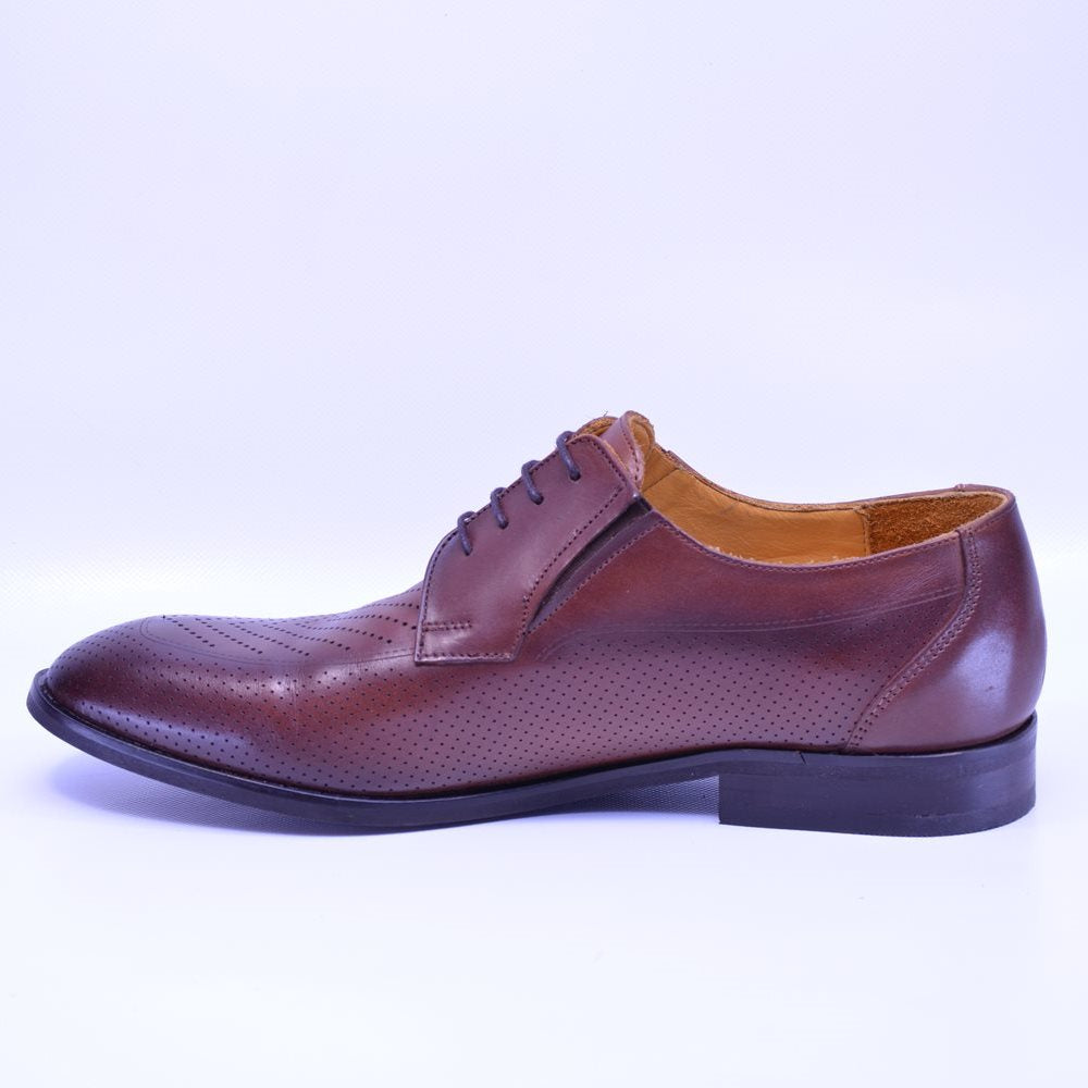 Pantofi bărbătești realizați în România din piele naturală, atât la interior, cât și la exterior, oferind durabilitate și rafinament. Culoarea maro clasică îi face extrem de versatili, potriviți pentru birou sau evenimente speciale.