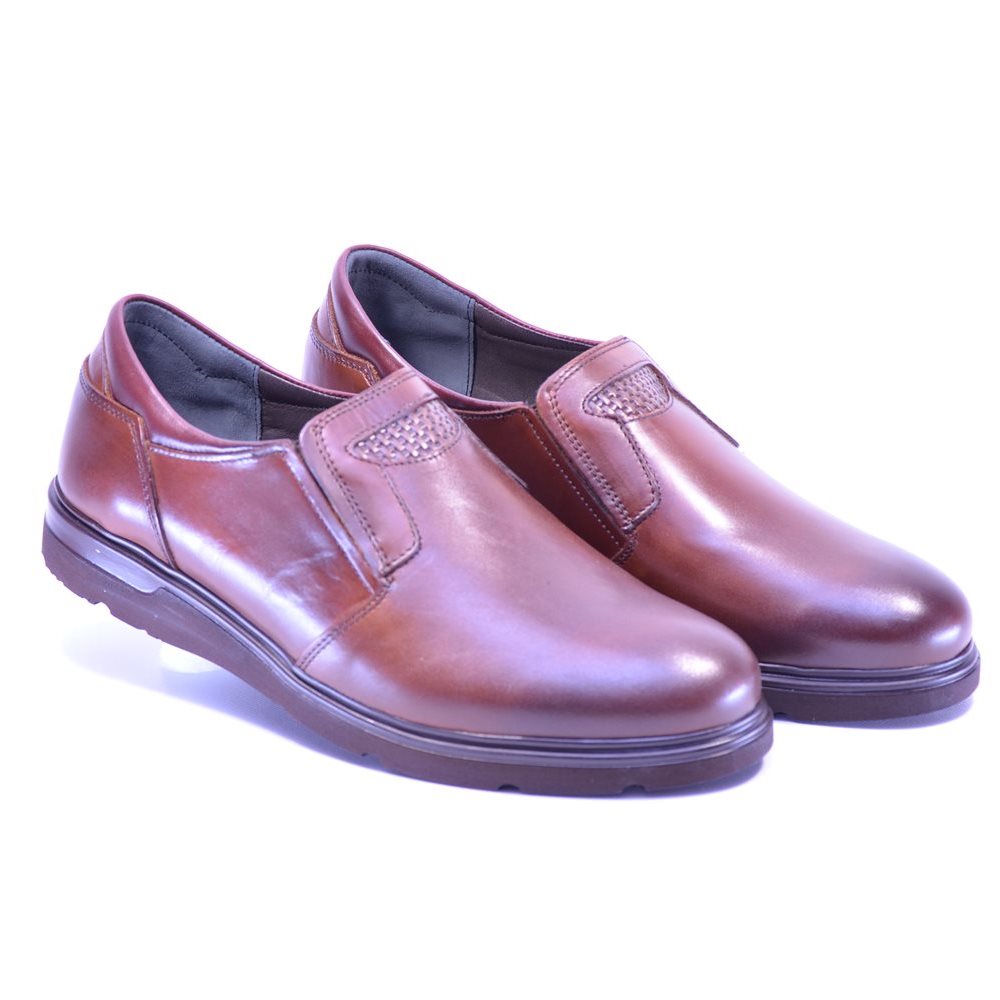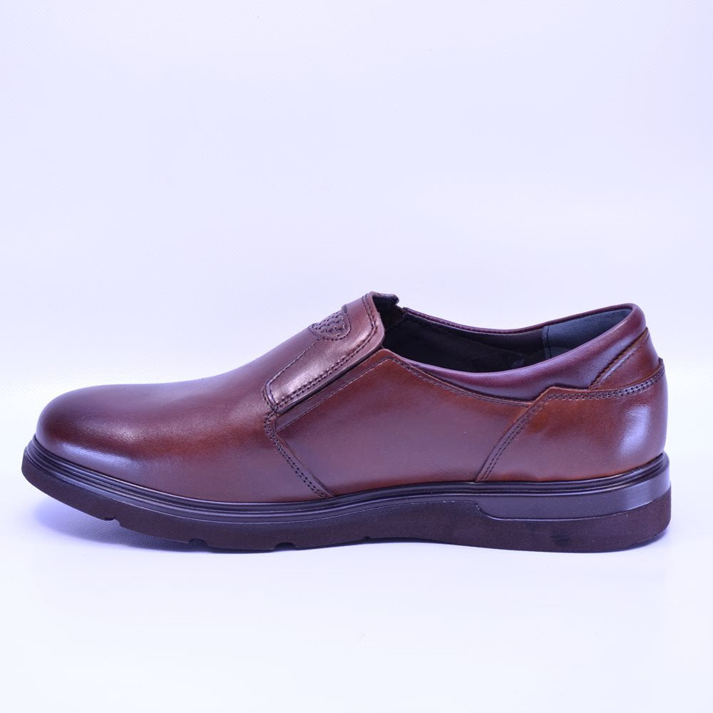 Pantofi bărbătești fără șireturi, fabricați în România din piele naturală. Talpa ergonomică și flexibilă asigură susținere pe tot parcursul zilei, iar designul maro clasic îi face versatili, potrivindu-se atât la ținute office, cât și la combinații casual.