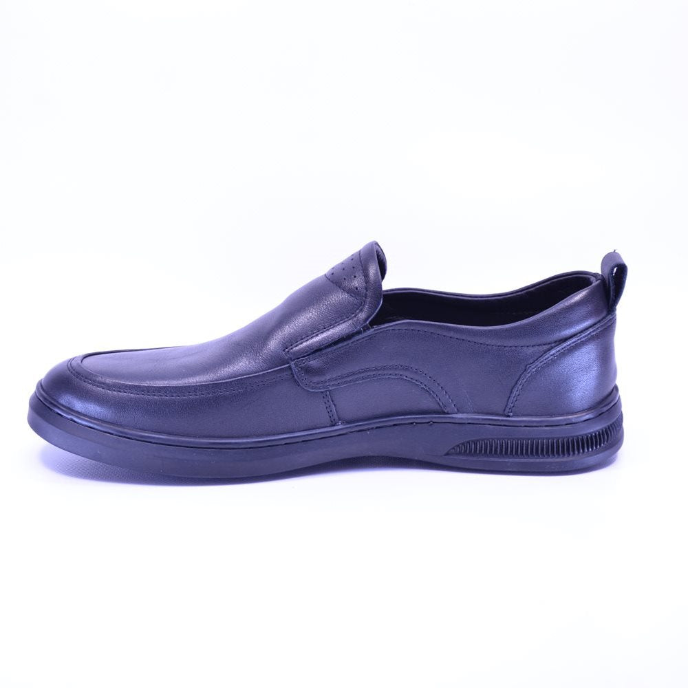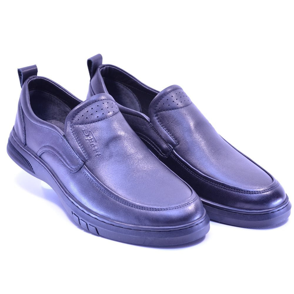 Pantofi bărbătești negri din piele naturală, ideali pentru ținute office sau ocazii speciale. Modelul fără șireturi oferă un plus de confort și ușurință la încălțare, iar branturile moi asigură o purtare plăcută.