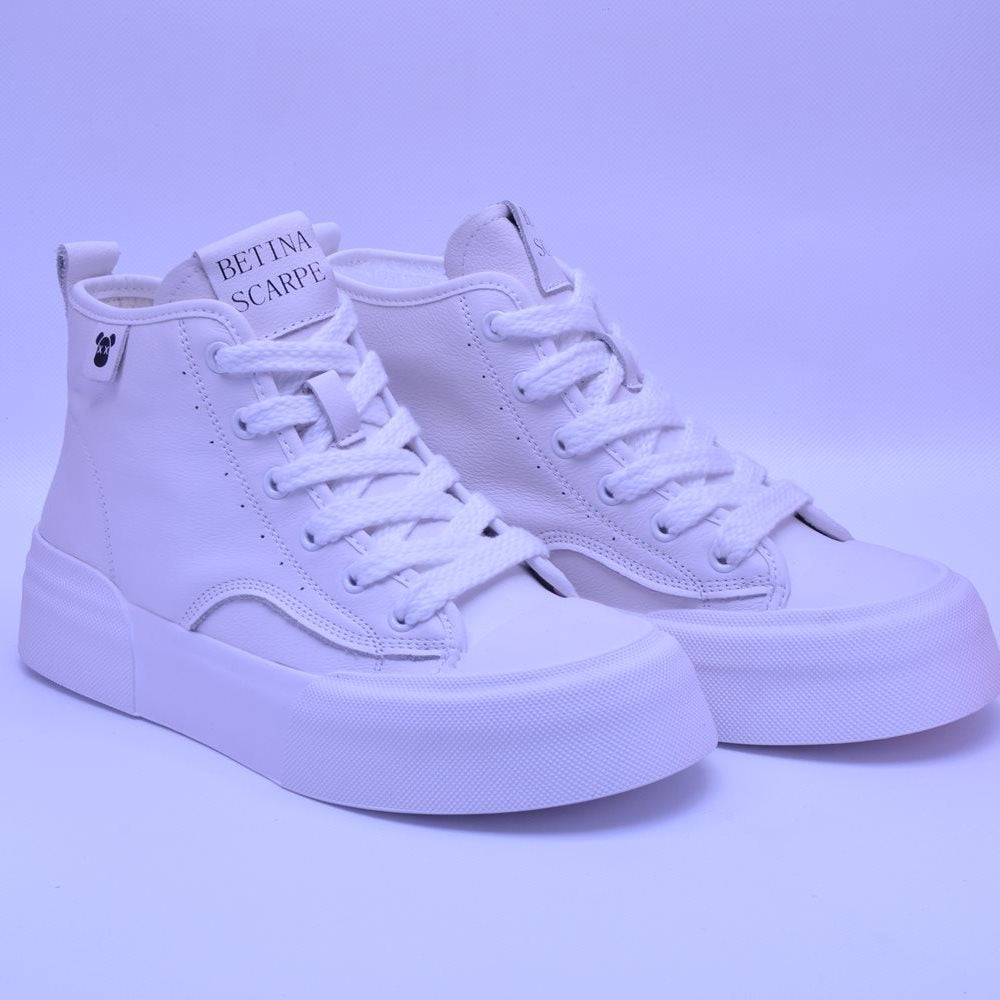 Acești pantofi casual de damă, tip bascheți, sunt confecționați integral din piele naturală moale, oferind un plus de confort și durabilitate.