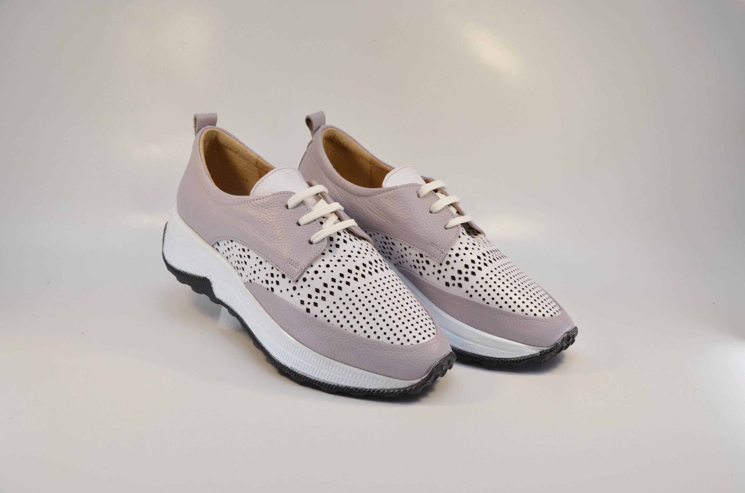 Pantofi sport din piele naturală, fabricați în România, cu un design modern cu perforații pentru o ventilație optimă.