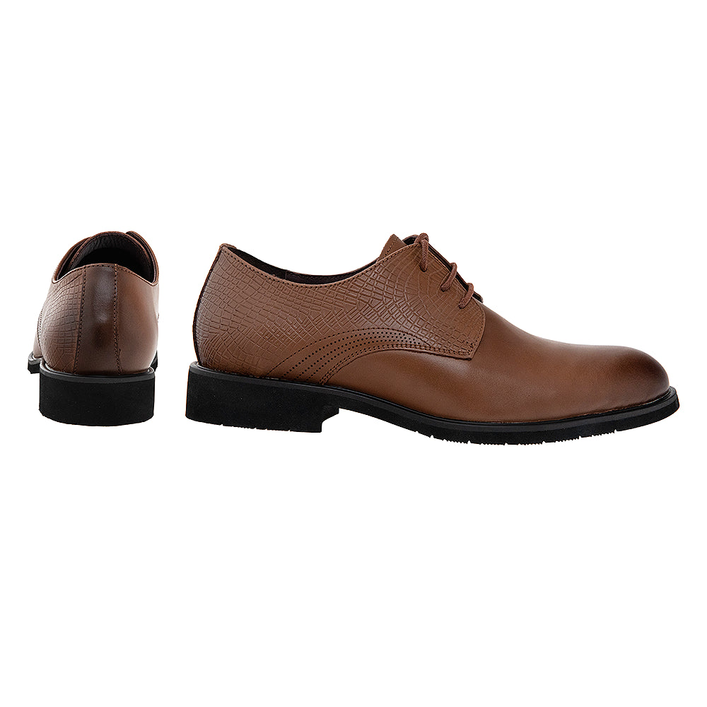 Pantofii Derby maro cu imprimeu confecționați din piele premium și se remarcă prin textura subtilă, adăugând un plus de originalitate și eleganță. Brantul moale și talpa flexibilă oferă confort pe durata întregii zile. Cu un design rafinat, sunt ideali pentru ținute office sau semi-formale.