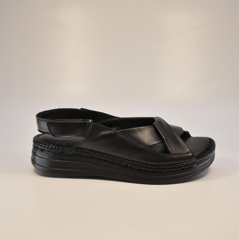Aceste sandale pentru damă, fabricate în România, sunt ușor de asortat și oferă confort datorită căptușelii din piele moale și brantului cu burete special. Sistemele de închidere cu scai, talpa robustă cusută manual și platforma de 3,5 cm la călcâi asigură fixare sigură, stabilitate și durabilitate.