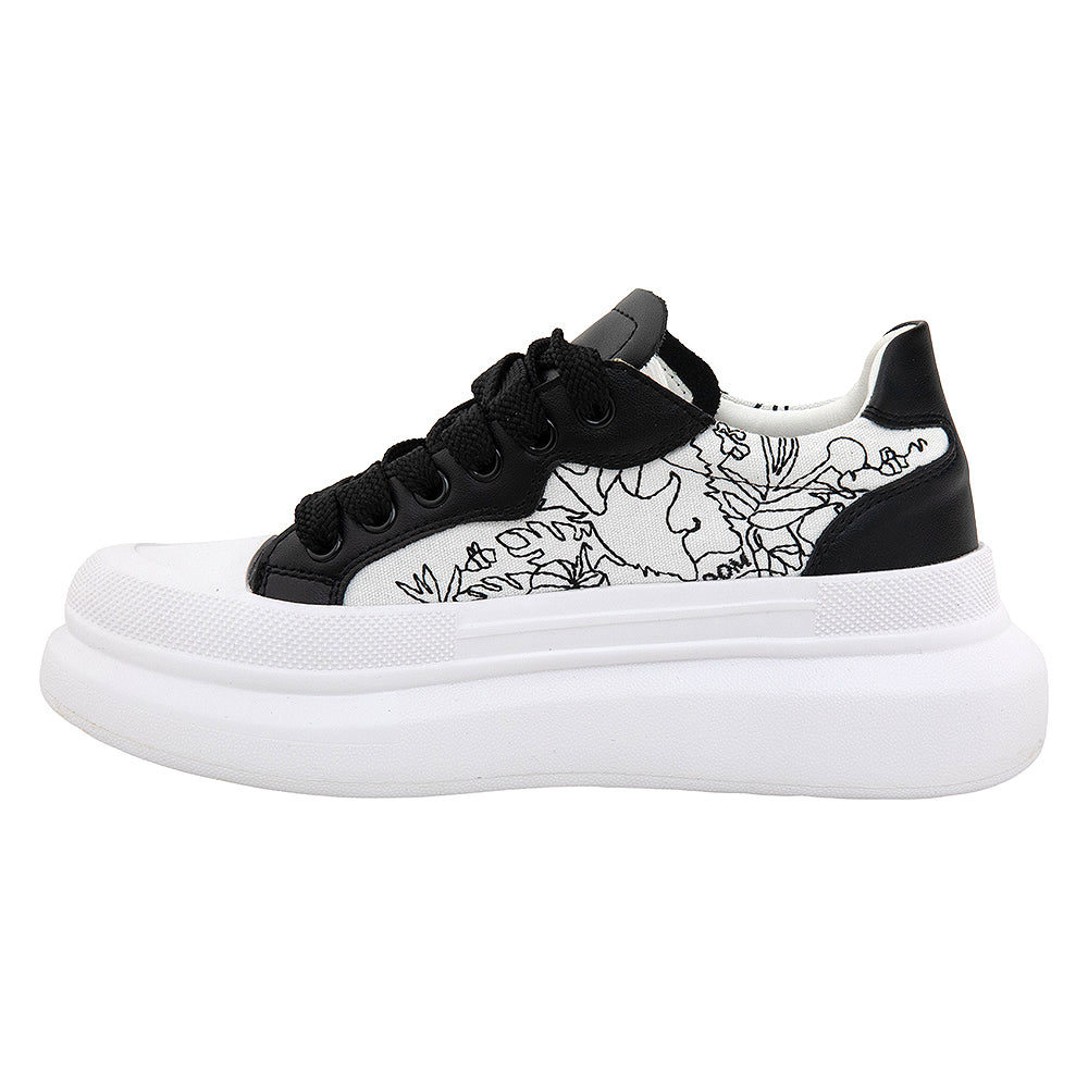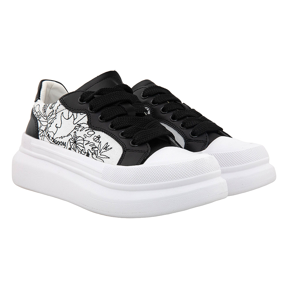 Tenisi dama, cu platformă și detalii florale. Construiți din materiale ușoare, acești tenisi oferă susținere și confort datorită tălpii înalte.