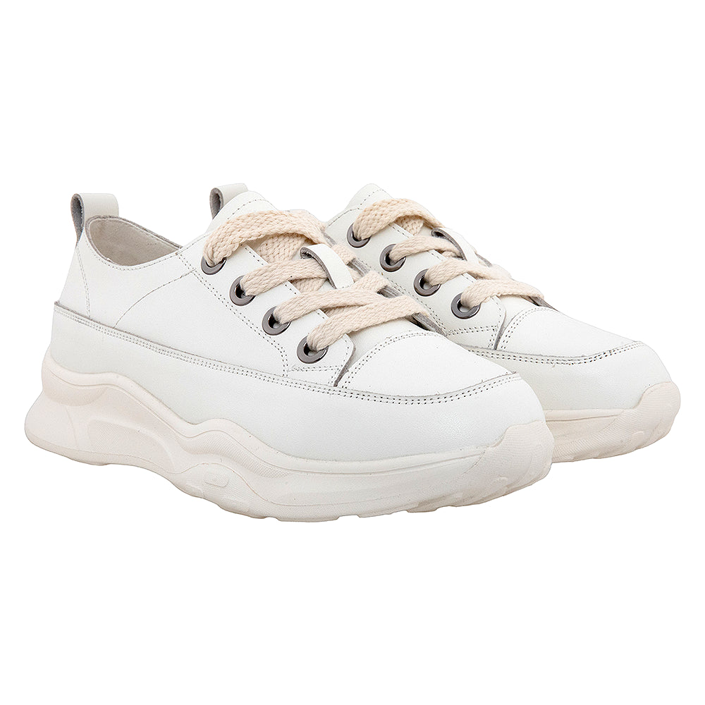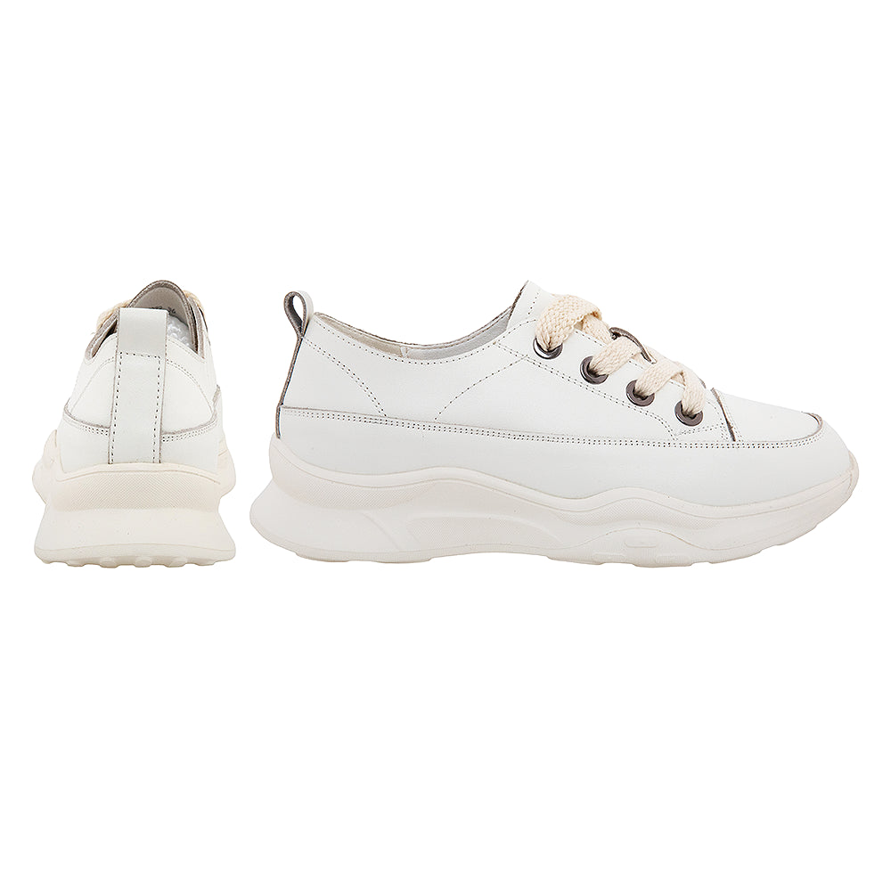 Tenisi ideali pentru femeile care vor să aducă un aer prospăt și modern ținutelor de zi cu zi. Acești tenisi albi din piele, cu talpă înaltă, oferă un mix perfect între confort și stil urban. Șireturile rezistente și căptușeala moale asigură o purtare plăcută.
